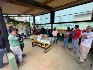 Embora o CEAAGRE – Centro de Educação Ambiental, Agroecologia com Geração de Renda – receba frequentemente visitantes interessados em conhecer nosso espaço e nossas práticas, este encontro foi voltado especialmente para os cooperados, com o objetivo de ampliar os conhecimentos sobre as abelhas nativas sem ferrão e sua relevância para a biodiversidade de nosso bioma.
