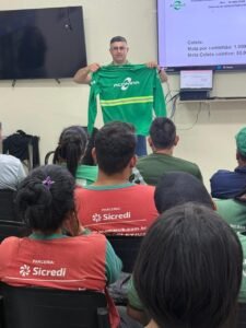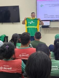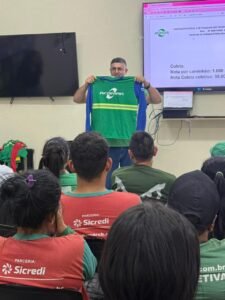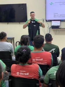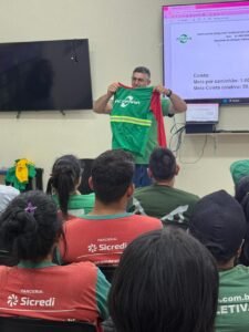 O presidente Cristiano Elias também participou ativamente, aproveitando a ocasião para apresentar as novas camisetas da ACAMAR, que em breve serão utilizadas por todos os cooperados.