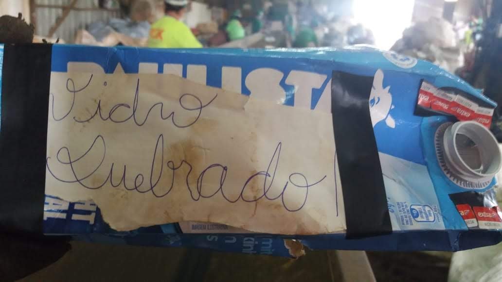 Com todo carinho ele ou ela separou seus materiais recicláveis para a ACAMAR e fez questão de dizer que havia vidro quebrado.