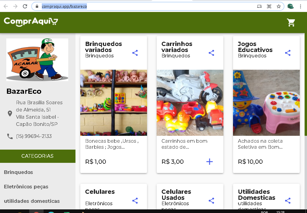 Além de ter seu site atualizado e suas redes sociais ativas, a ACAMAR tem agora um canal de vendas do BazarEco.