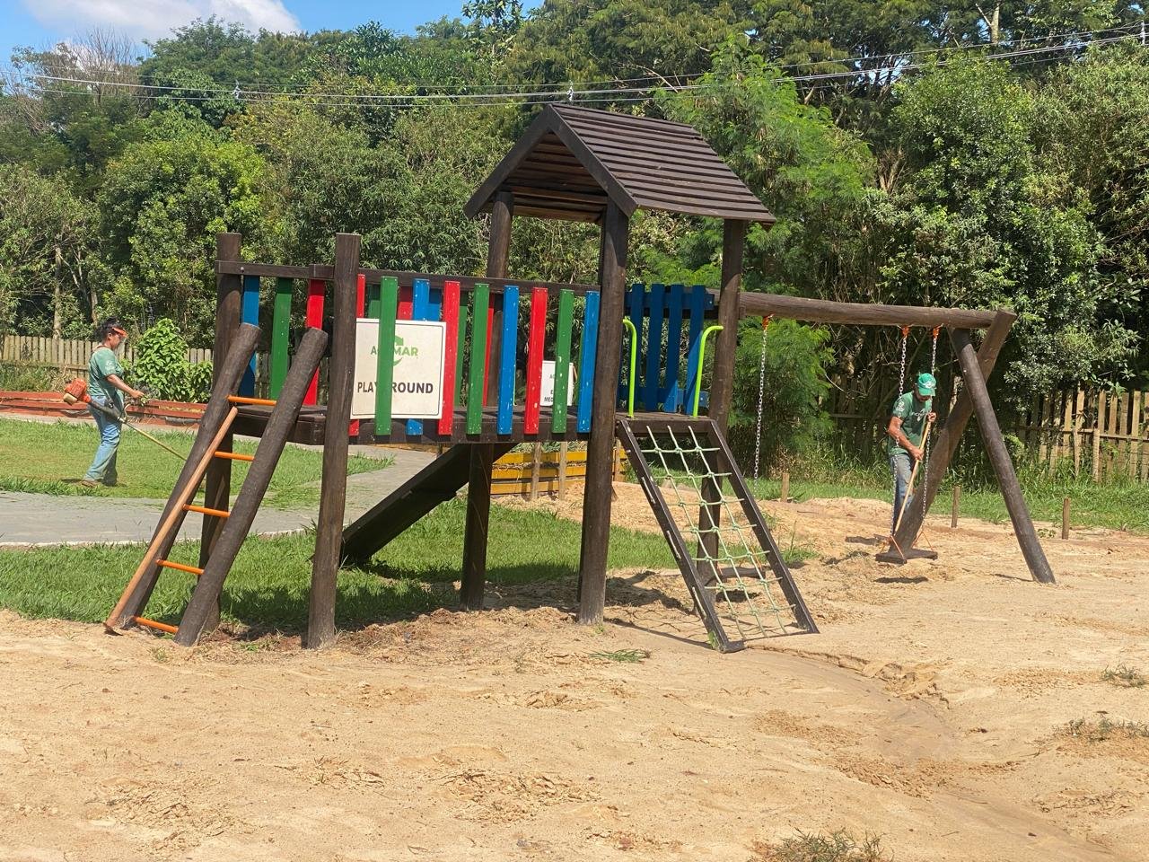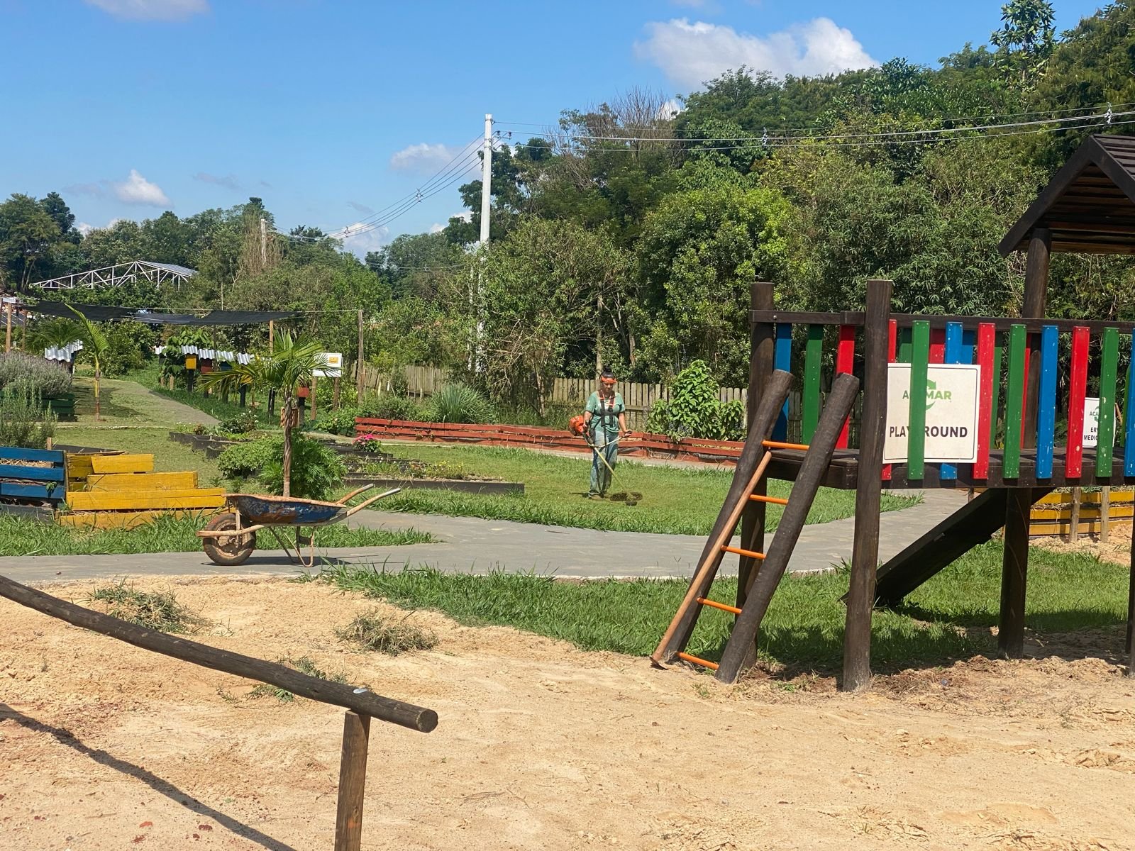 Faça chuva ou faça sol, o pessoal da ACAMAR está sempre trabalhando e dando o melhor de si para o bem de todos. Aqui temos nossos cooperados Carol e Paulo, roçando e mantendo limpo nosso futuro CEAAGRE. ![]()