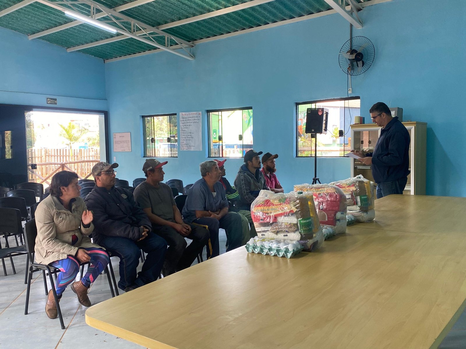 Hoje os catadores do Programa Valoriza estiveram em reunião com o presidente Cristiano, alinhando alguns assuntos e recebendo suas cestas básicas.