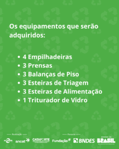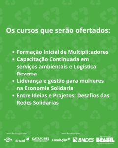 Serão oferecidos equipamentos, cursos de capacitação e assessorias para as cooperativas.