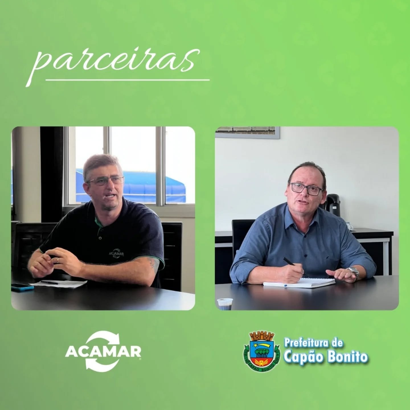 Em reunião realizada com o prefeito Julio Fernando, com a presença do Secretário de Meio Ambiente Felipe Marques e do Diretor de Meio Ambiente Leonas, os membros da ACAMAR receberam importantes notícias para o fortalecimento da cooperativa.