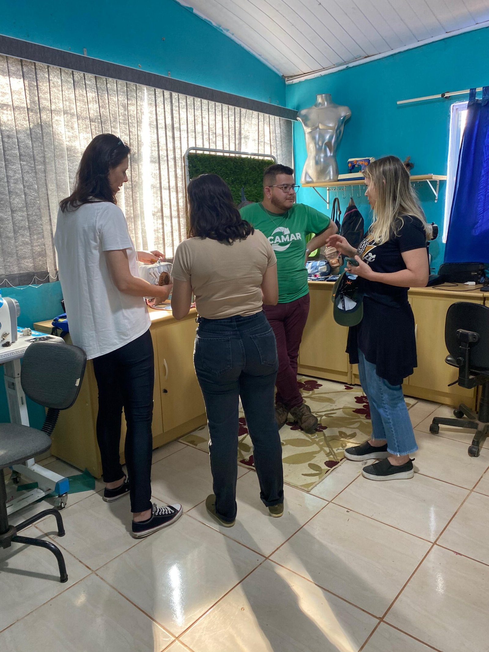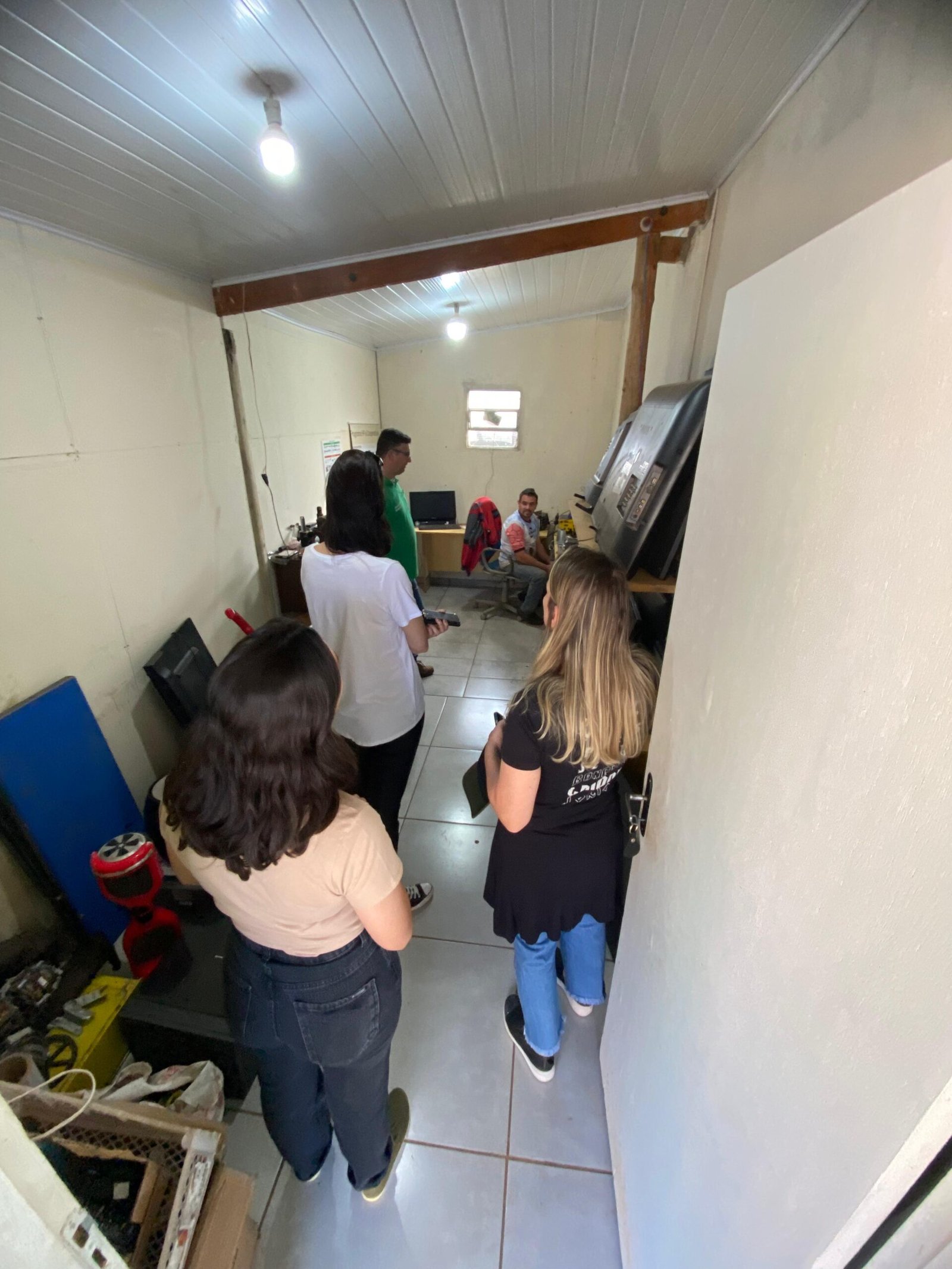 Ao finalizar esta etapa, todas puderam conhecer a Oficina de Eletrônicos, onde o cooperado Roberto é o responsável pelo conserto dos aparelhos coletados. Depois foram até o Ateliê, onde o artesão Everton Oliveira faz a criação e customização de lindas peças. E então viram de perto todo o processo da chegada e separação dos materiais recicláveis.